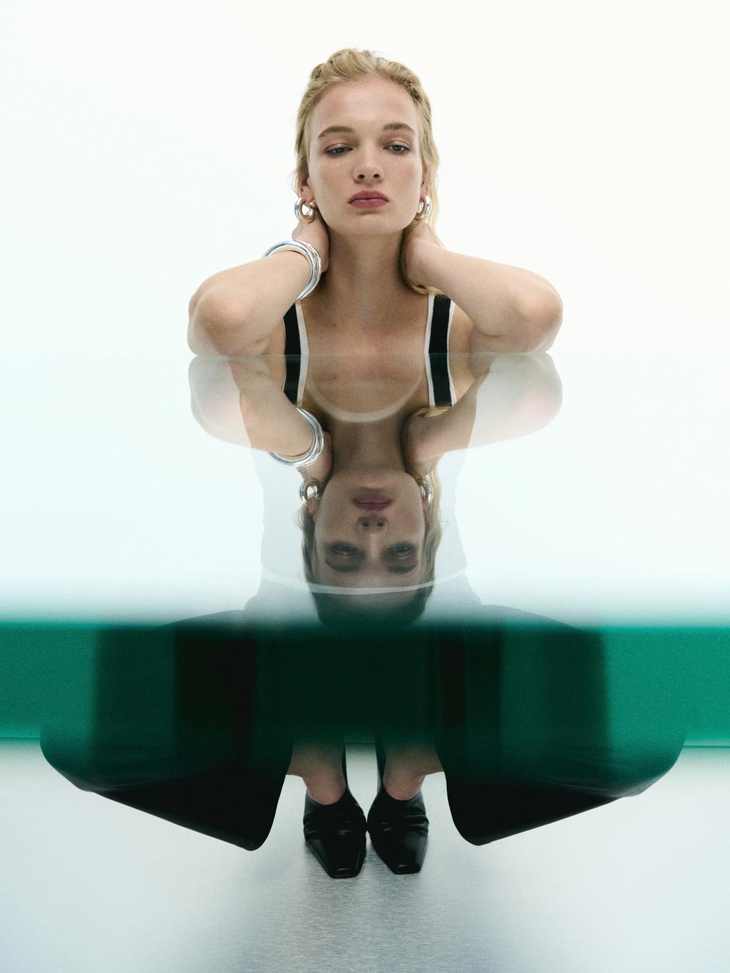 T-shirt with straps. Round neck. Faded finish for a subtle worn effect. Made of 100% cotton. Contrast colour detail. Contains two garments joined by a small stitch on the top seam.
