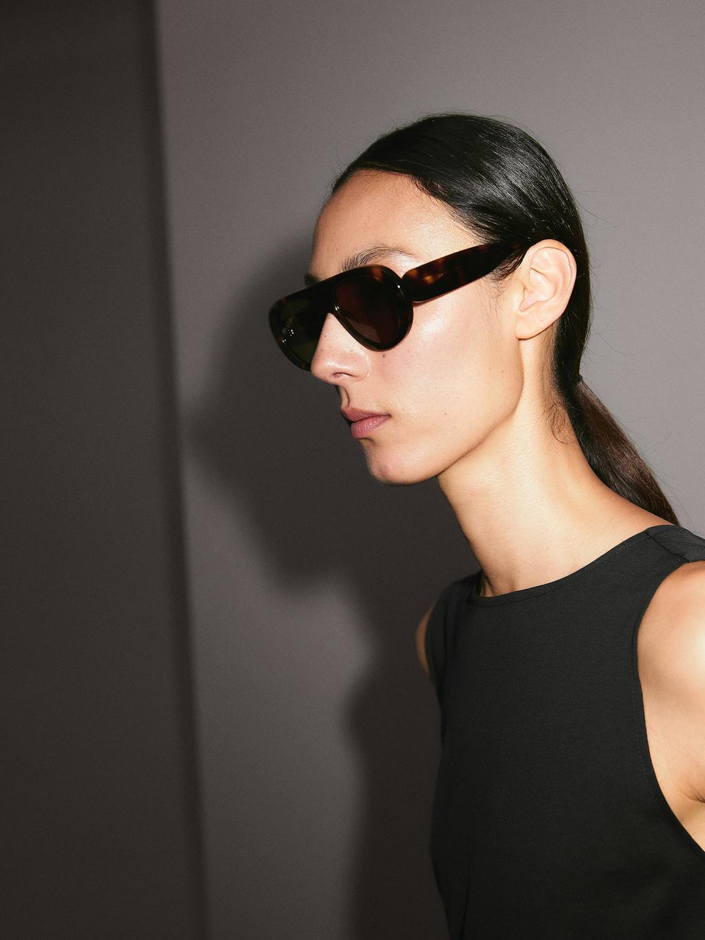 Top made of 100% cotton fabric. Draped back neckline. Sleeveless. Pleat detail at the side. Fine, lightweight fabric.