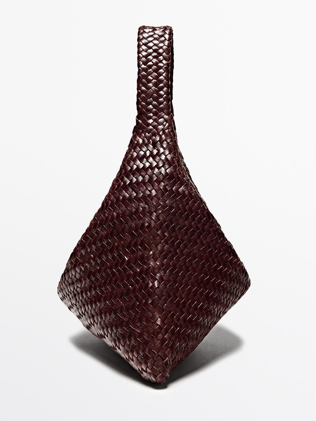 Handbag made of cowhide leather with a nappa finish. A handle/shoulder strap. Magnetic snap-button fastening. Braided detail.